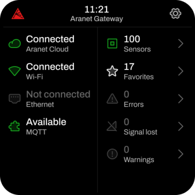 On the display of Aranet Gateway Pro, you will get a message for successful connection, an icon will turn green on the Home Screen, and the status will show up as Connected: