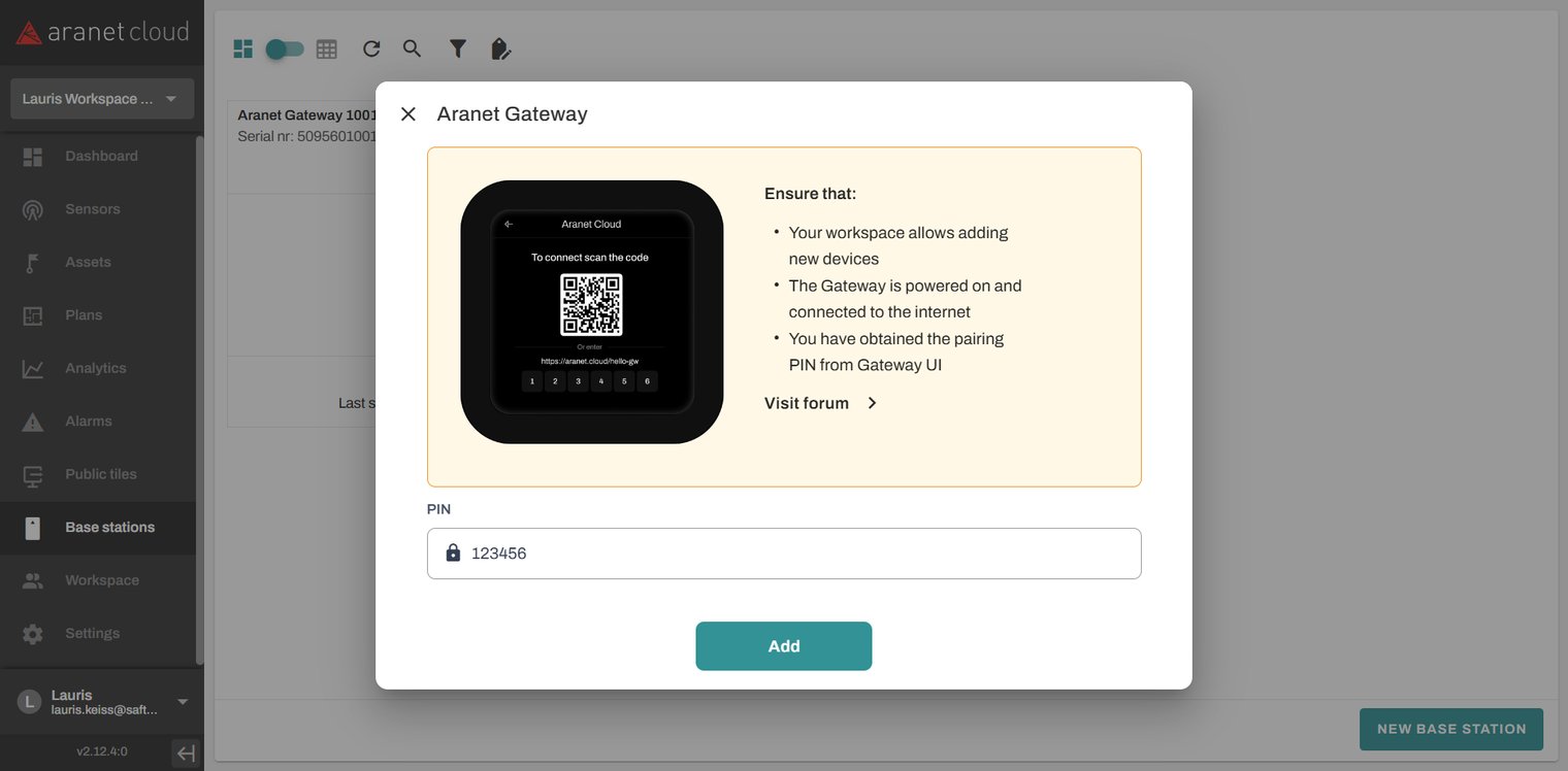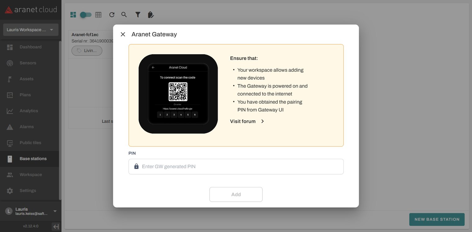 Registering Aranet Gateway Pro base to the existing WORKSPACE