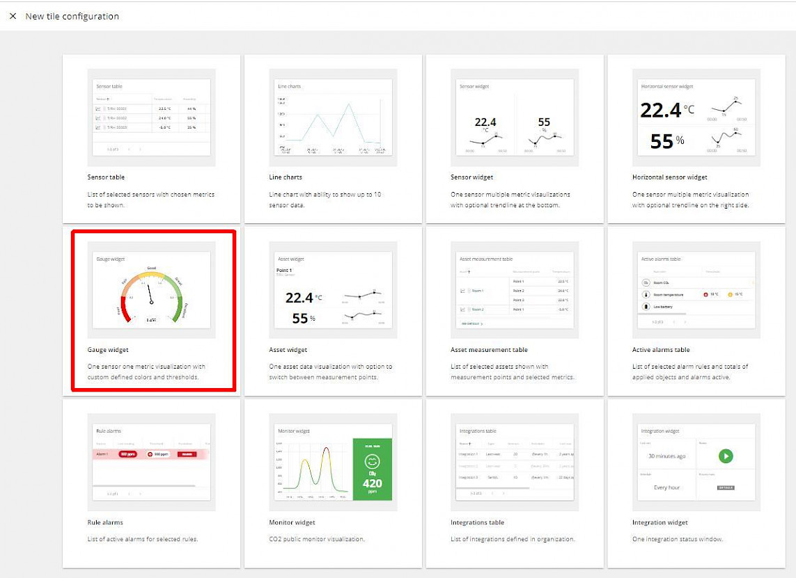 - Select Gauge widget from the Tiles in opened window:
