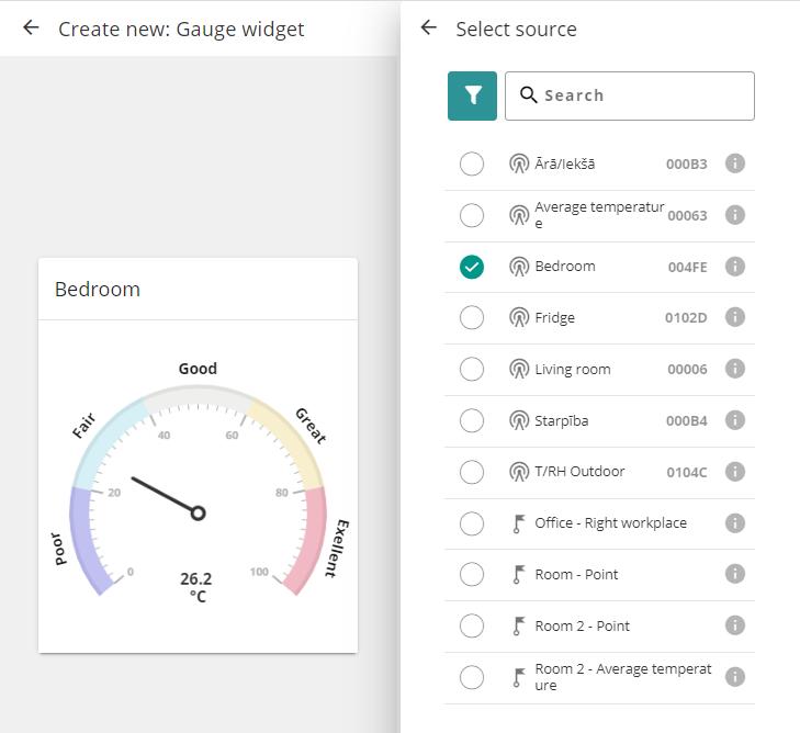 - Select the source of the data for the tile; you can filter by Locations and Tags: