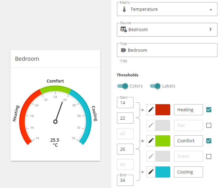 Assuming that comfort temperature is between 22 and 26 degrees Celsius, the configuration and view can be following: